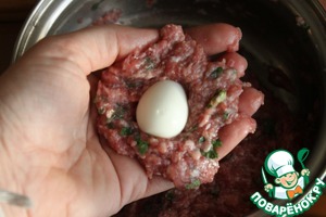 Из фарша сделать лепешечку, в центр положить перепелиное яйцо.