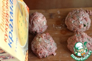 Защипнуть колобок и обвалять в кукурузном крахмале.
