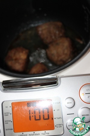 Мультиварку VITEK VT-4203 SR включить на "Экспресс режим" налить арахисовое масло, подождать, пока оно разогреется, и обжарить фрикадельки.