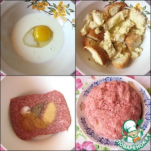 В миске размешать молоко и яйцо, затем добавить хлеб и дать постоять несколько минут, чтобы хлеб размягчился, после чего хорошенько растереть до однородности.