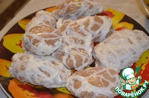Сформировать котлеты, выложить на отрез жировой сетки. Сетку я режу кухонными ножницами.