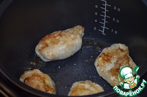 Включить режим "Поджаривание", готовить котлеты при закрытой крышке, с двух сторон.