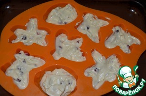 Выложить тесто в приготовленные формочки, заполняя на 2/3 объема. Выпекать минут 15 при температуре 180 градусов.