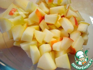 Делаем начинку. У яблок удалить сердцевину. Если хотите, то можно почистить и кожицу, но скажу сразу, что она потом в пироге абсолютно не мешает и не чувствуется. Порезать кубиками. Залить лимонным соком, перемешать.