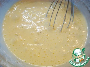 Добавить муку в яичную смесь и все взбить.