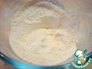 Муку перемешать с солью и разрыхлителем.
