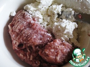 Смешать фарш, фету, орегано, хлопья перца (кто не любит сильно жгучий, то берем зеленый, как у меня), соль, черный перец. Сильно не вымешивать. Пусть останутся маленькие кусочки феты.