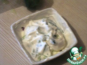 Смешать йогурт, огурец, мяту, цедру лимона и сок, соль и черный перец.