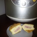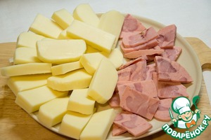 Расплющиваем. Кладем в центр сэндвич: ветчина/сыр/ветчина.