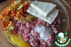 Добавляем замоченный в молоке белый хлеб, яйцо.