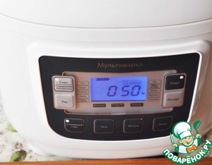 Включаем мультиварку на режим "Выпечка" на 50 минут, закрываем крышку.