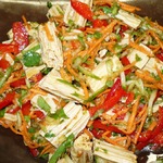 Весной нашему организму очень нужны витамины, энергия и просто хорошее настроение. Для меня все это связано с любимым Азия-салатом. Этот яркий, красочный и вкусный салат готовится из соевой спаржи (юба), которая полна не только витаминами, минералами, но и очень ценным растительным белком. Попробуйте, может и вам этот салатик поможет пережить мартовские метели. А если Вы постуете, просто приготовьте его без мяса, это очень вкусно.