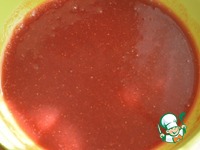 6. Клубнику переложить в сотейник, влить немного воды, довести до кипения. Затем протереть через сито. У меня получился стакан жидкого пюре. |