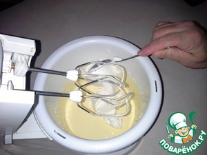 Добавляем маскарпоне и взбиваем в медленном режиме около 2-3 минут. Следите, чтобы масса не нагрелась.