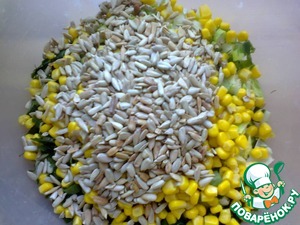 Добавляем кукурузу и семечки.