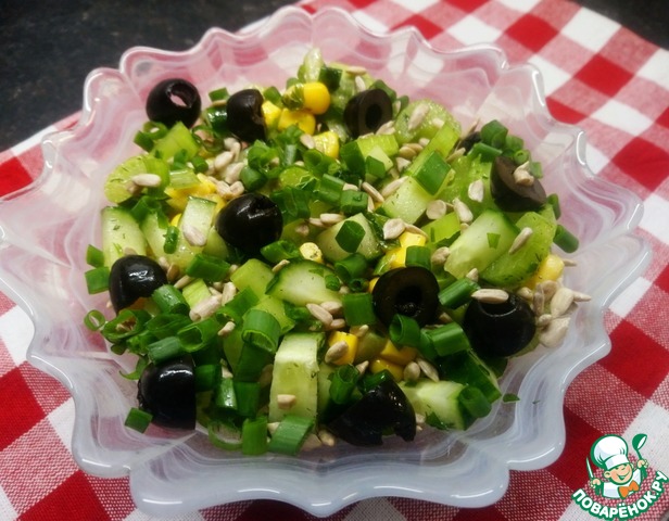 Рецепт «Салат из кукурузы, семечек и огурца»: