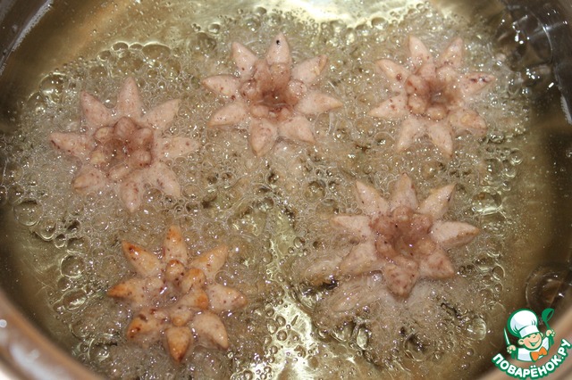 Для подачи посыпать сахарной пудрой. Дети кушали с медом, а муж с вареньем. На следующий день хризантемы стали более хрусткими