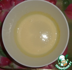 Желтки отделить от белков. Желтки растереть с сахаром до бела. Вмешать в них муку.