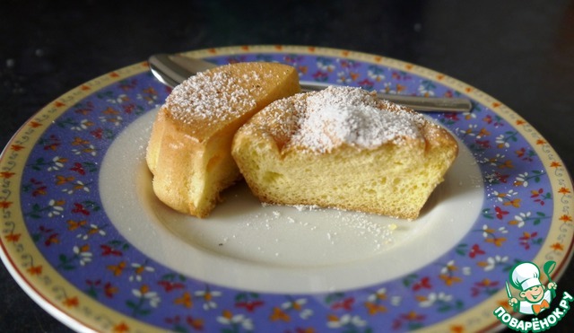 Муку смешать с 2 столовыми ложками взбитого белка, осторожно ложкой подмешиваем остальной белок и желтки. Массу сразу выложить в смазанную форму ложкой горками и в горячую духовку 180 градусов на 15 минут. Готовый десерт сразу из духовки посыпаем сахарной пудрой и кушаем!!!