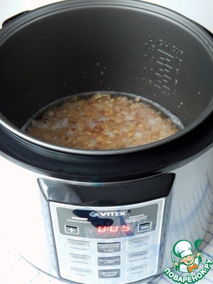 • Влить 1,5 стакана воды, приправить солью и перцем, довести до кипения.
