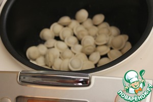 В чашу мультиварки выложить замороженые пельмени (у меня мелкие домашние самолепные), я их не размораживала