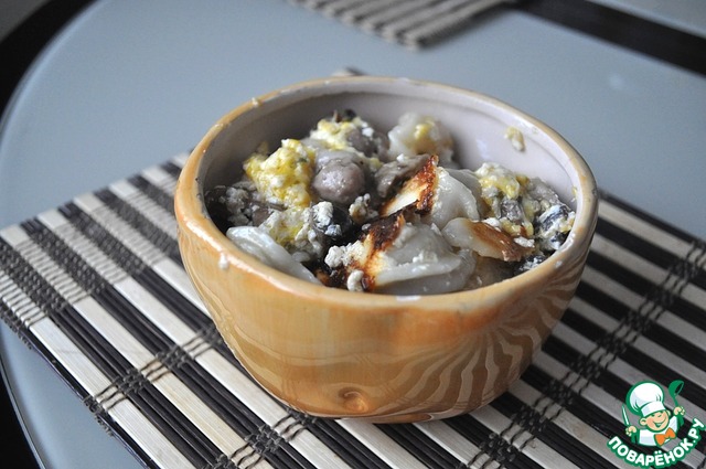 Рецепт «Пельмени, запечённые с лисичками в йогурте»:
