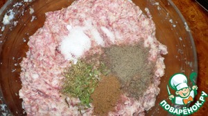 Готовим фарш: прокручиваем мясо, булку, лук через мясорубку, посыпаем солью, перцем, добавляем молоко от замоченной булки и все тщательно перемешиваем. Добавляем яйцо, снова все перемешиваем. -