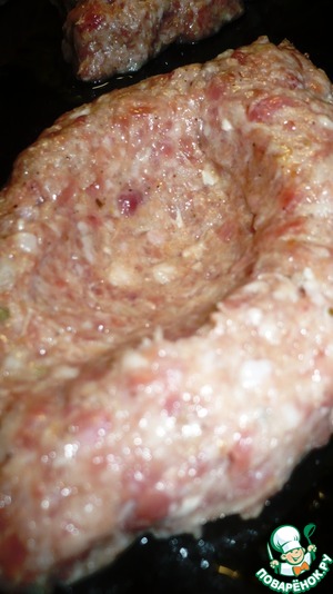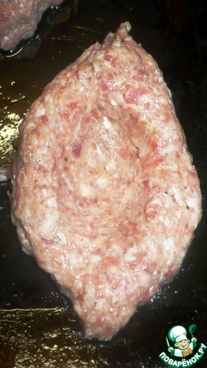 Набираем полную ладонь фарша, лепим котлетку в виде лодочки и кладем на противень, смазанный маслом.