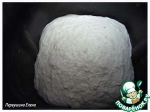 Тесто я замешиваю в хлебопечке: смешиваю растительное масло с водой, ряженкой, сахаром и солью. Сверху кладу муку (просеянную), делаю небольшую лунку и добавляю в эту лунку дрожжи. -