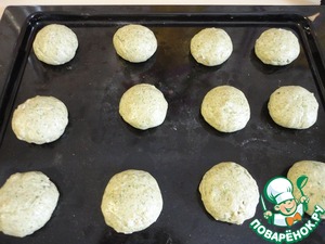 Разделать тесто на одинаковые булочки около 60гр., смазывая руки оливковым маслом.