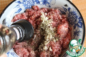 Ф бараний фарш добавить травы, чеснок, посолить, поперчить
