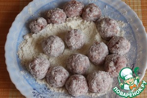 Скатать шарики размером с грецкий орех, обвалять в муке