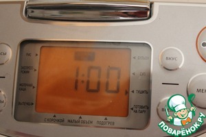 Включить мультиварку на режим "тушить" (программа выставляет 1 час, но блюдо будет готово буквально через 30 минут)