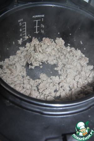 Во время готовки фарш лучше помешивать, чтобы он не получился комками.