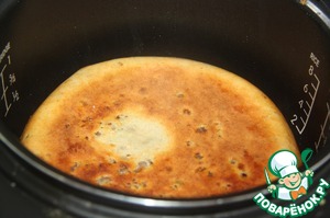 • Через 25 минут пирог перевернуть, удобно это делать при помощи лотка для приготовления на пару.