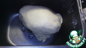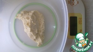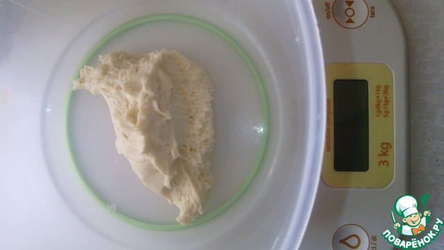 Сверху насыпаем 400г просеянной муки. Замешиваем тесто 20-25 минут до гладкости