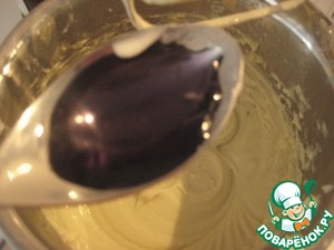 • Сливочное масло комнатной температуры взбить с кремом, добавить фиалковый сироп.