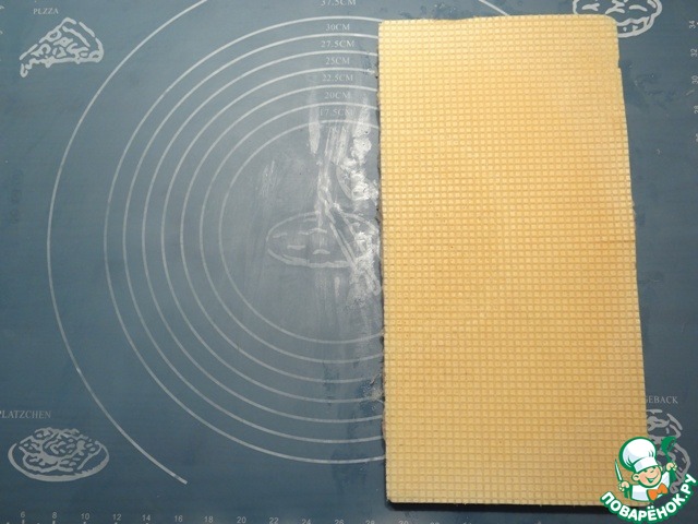 Вафельные коржи складываю вместе начинкой внутрь. |