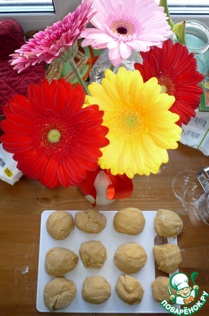 Разделим тесто на 12 частей. Раскатываем коржи и выпекаем их на промасленной бумаге.