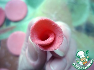 Заварим себе чашечку ароматного чая и подумаем: какого цвета розы нам бы хотелось видеть на торте. Мои - розовые, а какие ваши? Выбрав цвет, готовим мастику (рецептов мастики много, я готовила ее из маршмеллоу) нужного оттенка и приступаем к лепке. Раскатываем мастику и подручными материалами вырезаем кружочки (я взяла детскую бутылочку - крышечкой вырезала), края утончаем (раскатывала все той же бутылочкой). и смазываем их водой (чтобы лучше склеивались).