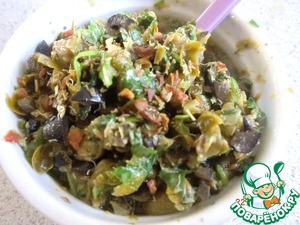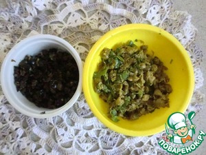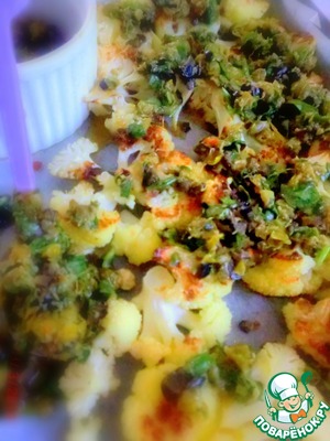 • Пока цветная капуста запекается в духовке, мелко рубим зелень, каперсы и оливки