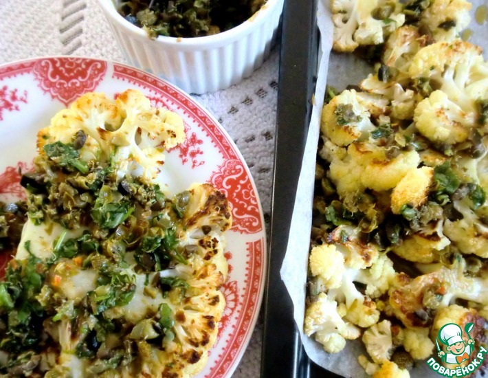 Рецепт «Стейки из цветной капусты с оливками и зеленью»: