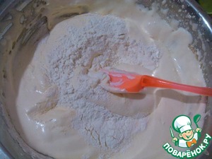 Добавить муку и осторожно перемешать.