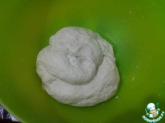 Замесить мягкое тесто (не забивайте мукой!) Закрыть пленкой и поставить в теплое место на расстойку на 1 час.