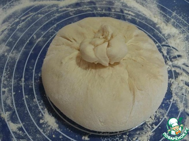 Затем по краю соберите тесто в колобок и хорошенько в центре закрепите.