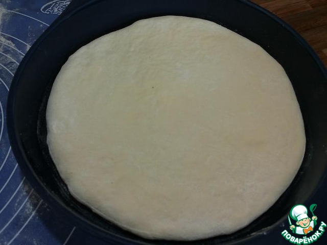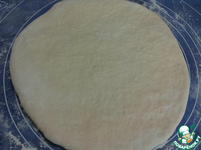 Аккуратно скалкой раскатайте лепешку по диаметру своей формы ( у меня 26 см).
