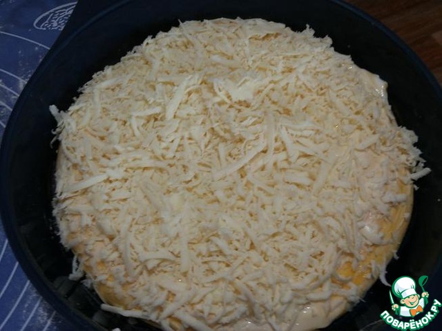 Сверху посыпьте оставшимся сыром ( 150 г)