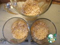 Посыпаем орехами пюре из кураги. Немного из притрамбовываем. Т. к. в пюре присутствуем молоко, а в грейпфрутовом соке - кислота, то слой орехов нужен для того, чтобы пюре из кураги не контактировало непосредственно с еще жидким желе. |