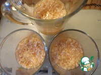 Наливаем в каждую форму по 2 столовые ложки грейпфрутового сока с желатином. Отправляем в холодильник минут на 20 для застывания. |