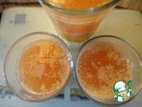 У меня был быстрорастворимый желатин. Я нагрела сок градусов до 60 и растворила в нем желатин. Если у Вас желатин обычный, то замочите в нем желатин на 30-40 минут, потом нагрейте помешивая до полного растворения желатина. Я не люблю сладкого, поэтому в грейпфрутовый фреш сахар не добавляла. Попробуйте на вкус и подсластите при желании. |